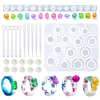 指輪 ペンダント シリコンモールド 2個セット 攪拌棒 ストロー ゴム指付き UVレジン型 リング型・・・