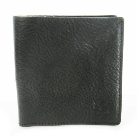 【中古】イルビゾンテ IL BISONTE 二つ折り財布 ウォレット お札入れ 小銭入れなし レザー 革 型押しロゴ 保存袋付き 黒 ブラック /A