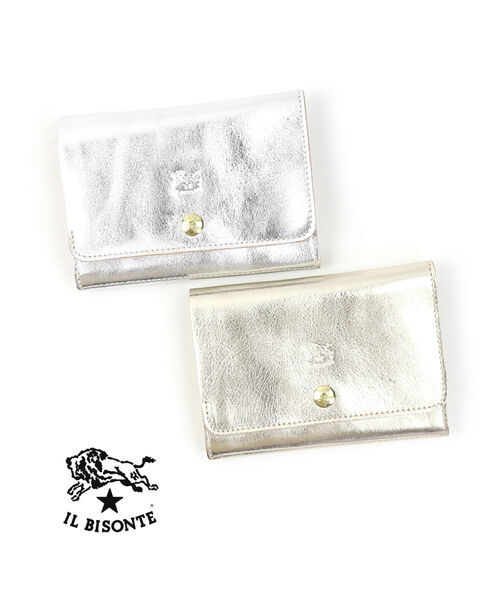 イルビゾンテ 財布 二つ折り 正規品 IL BISONTE メタリックレザー フラップ付き 二つ折り・・・
