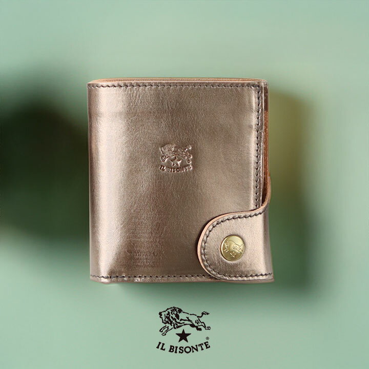 IL BISONTE 財布 二つ折り 本革 ブロンズレザーモデル。ウインターギフトコレクションで登場したコンパクトウォレット。小銭入れ、カード収納、エイジングを楽しめる逸品。