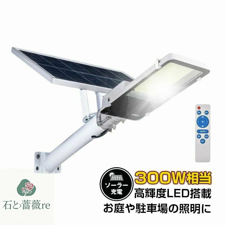 LEDソーラー街灯 屋外ソーラーライト 高輝度 ソーラー充電式 自動点灯/消灯 300w相当 設置簡・・・