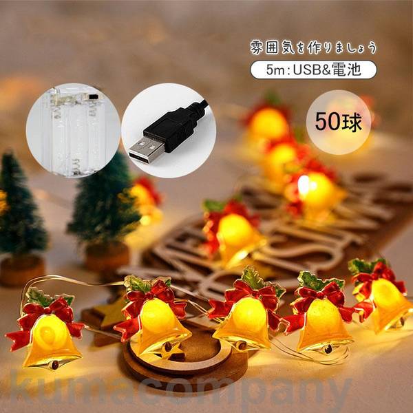 クリスマス 50球 飾り サンタクロース かわいい 電飾 ソーラーイルミネーション 2個入り ベル ・・・