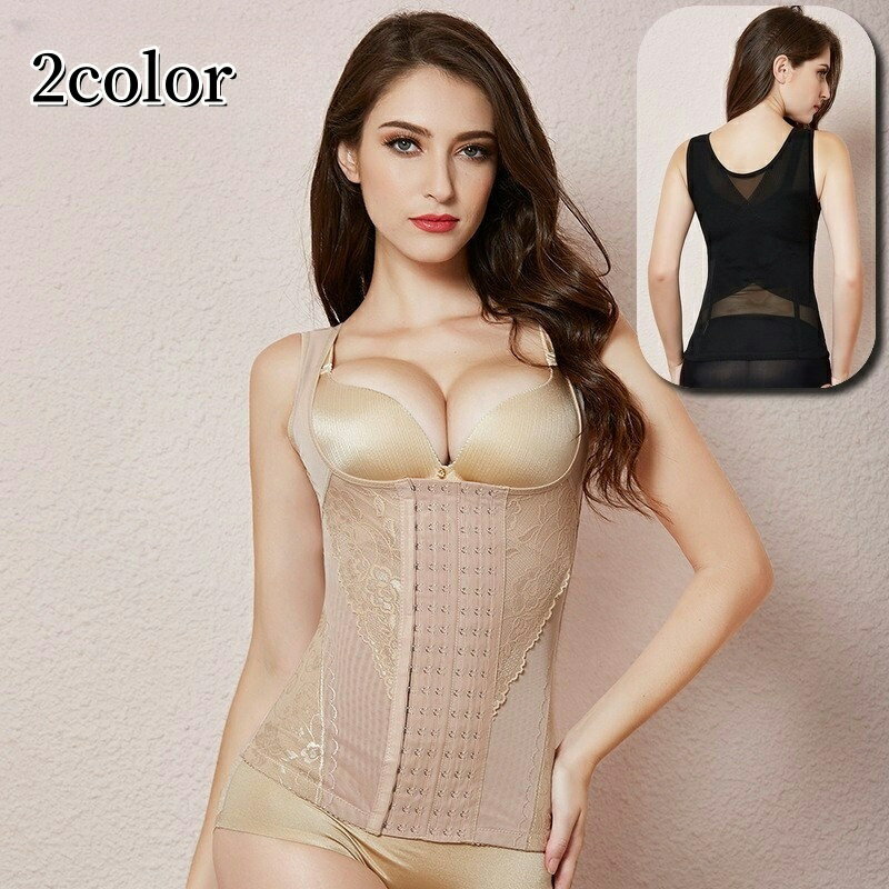 送料無料 タンクトップ型コルセット 補正下着 ボディシェイパー ボディスーツ ぽっこりお腹 ウエスト くびれ補正