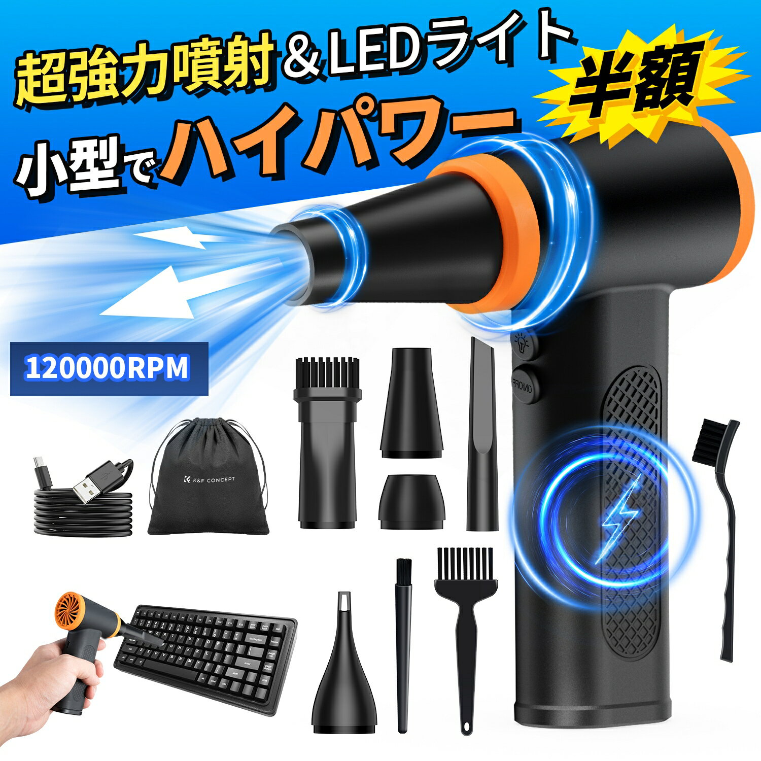 K&F Concept より効率的にホコリ掃除 通常のエアダスター缶の最適な代替品 オフィス、ご自宅、アウトドアで大活躍!「一年保証付き」 エアーダスター USB-Type-C充電式 ギフト プレゼント