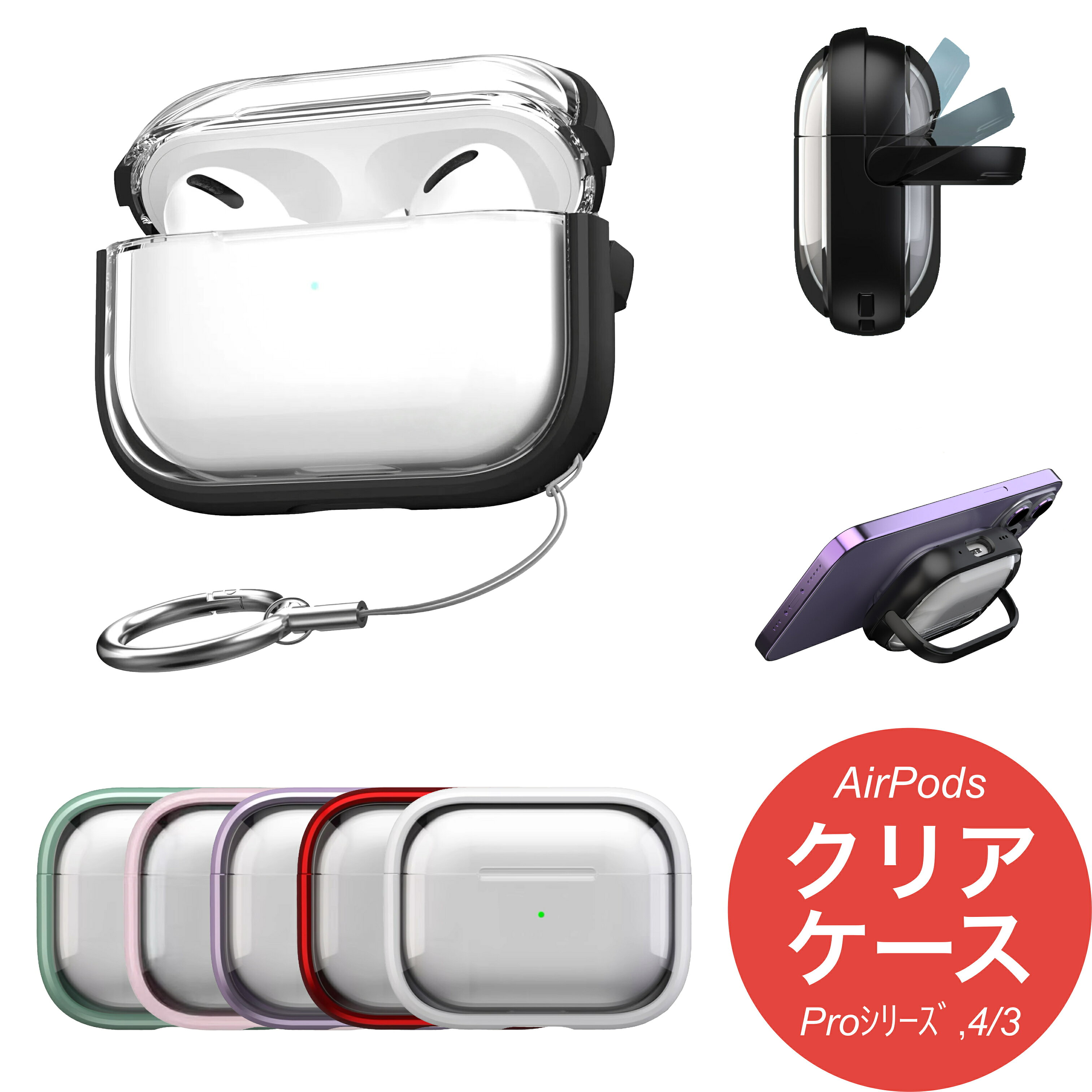 スタンド機能 カラビナ付き イヤホン Airpods多機種対応 保護 カバー アクセサリー