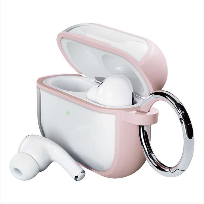 AirPods Pro(第2/1世代)用 タフケース ピンク エアポッズプロケース 耐衝撃 カラビナ・・・