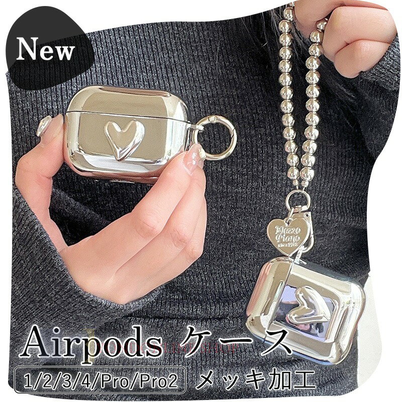 Airpods 4 3 2 1 Airpods pro2 pro ケース カバー ストラップ付き 耐衝撃 Airpods 4 第4世代 メッキ加工 傷防止 防水 防塵 耐久性 紛失防止 エアーポッズプロ 4 保護ケース カバー