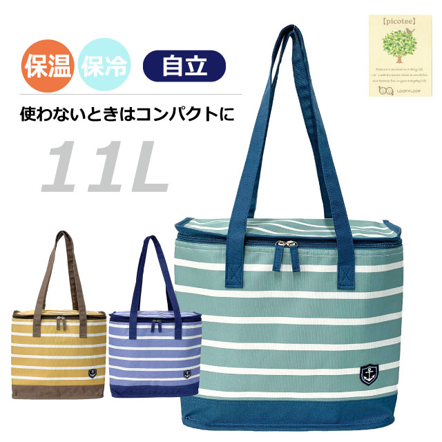 【4wh1】picotee 保冷保温エコバッグ BOXタイプ エコバッグ 保冷 保温 エコバック ファスナー 保冷エコバッグ 保温エコバッグ お買い物バッグ 折りたたみ可能 イエロー ブルー グリーン