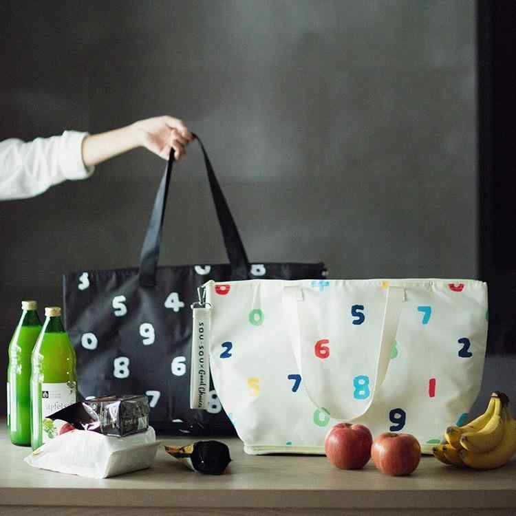 エコバッグ 大容量 保温保冷 折りたたみ ショルダートート 買い物袋 数字柄 プリント オックスフォ・・・