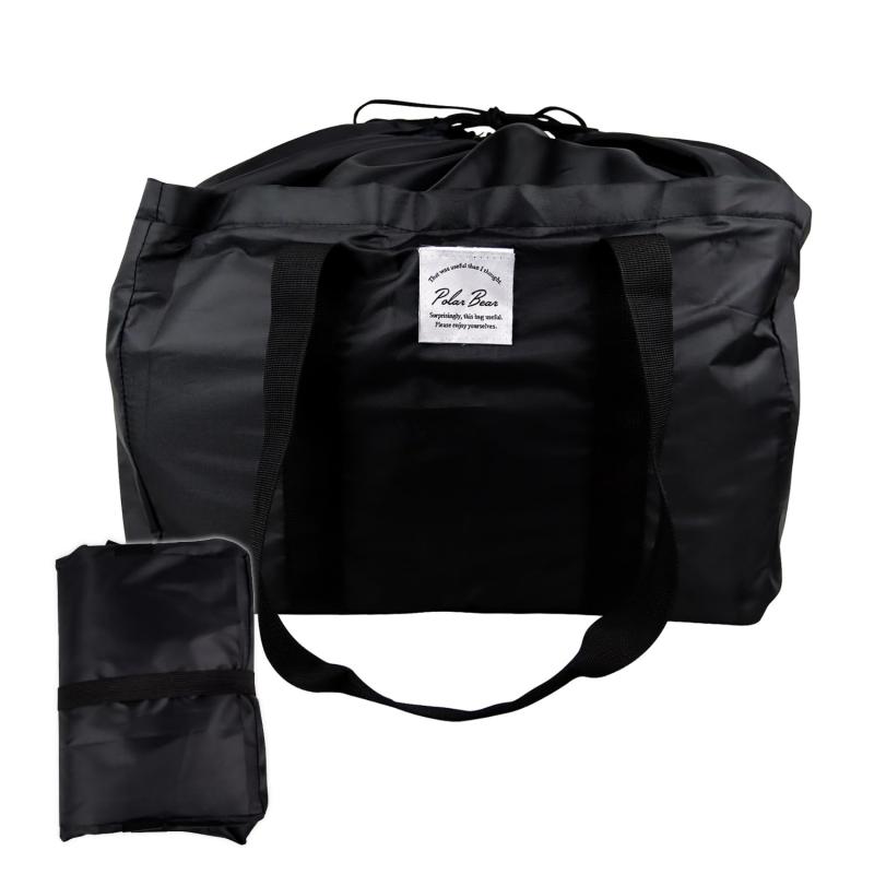 ファスナーで開閉、冷気を逃がさない コンパクト 肩掛け 保冷バッグ エコバッグ 畳める ポーチ コンパクト 折畳 収納 トートバッグ お買い物 買い物 カバン 手提げ 鞄 ブラック PolarBear