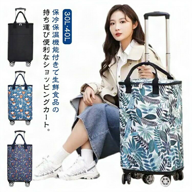 軽量設計の折りたたみショッピングカート。保温保冷機能付きで生鮮食品の持ち運びに便利。撥水加工で雨天でも安心です。