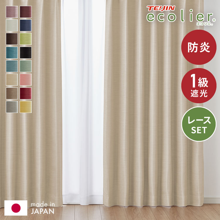 【送料無料】カーテン 4枚セット 2枚セット 1級遮光カーテン レースカーテン付き 日本製 防炎 タッセル付き 4枚セット 2枚セット 遮熱 保温 節電 省エネ