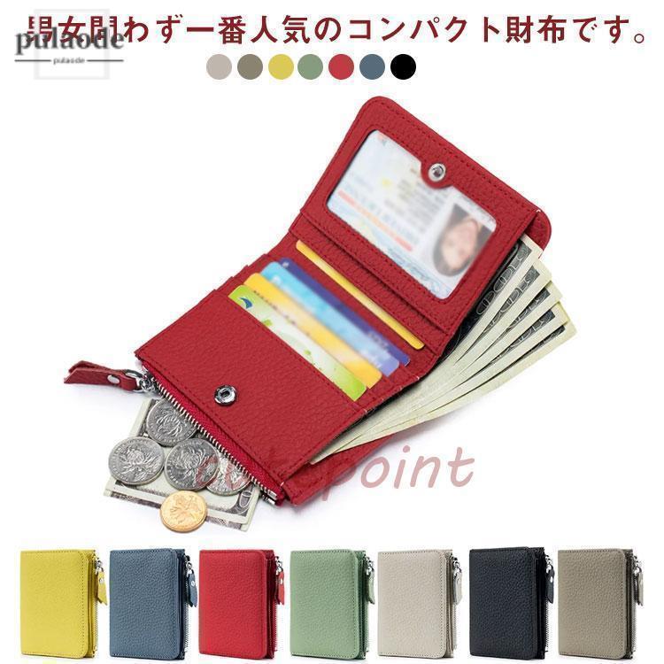 二つ折りカードケース 本革 カードケース 革 小銭入れ レザー ミニ財布 スリム 薄型 大容量 レデ・・・