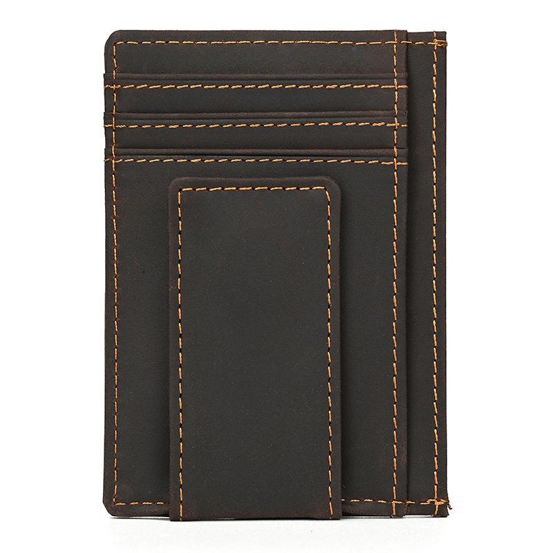 財布 メンズ マネークリップ 本革 牛革 クレイジーホースレザー 二つ折り レトロ ビンテージ 極薄・・・