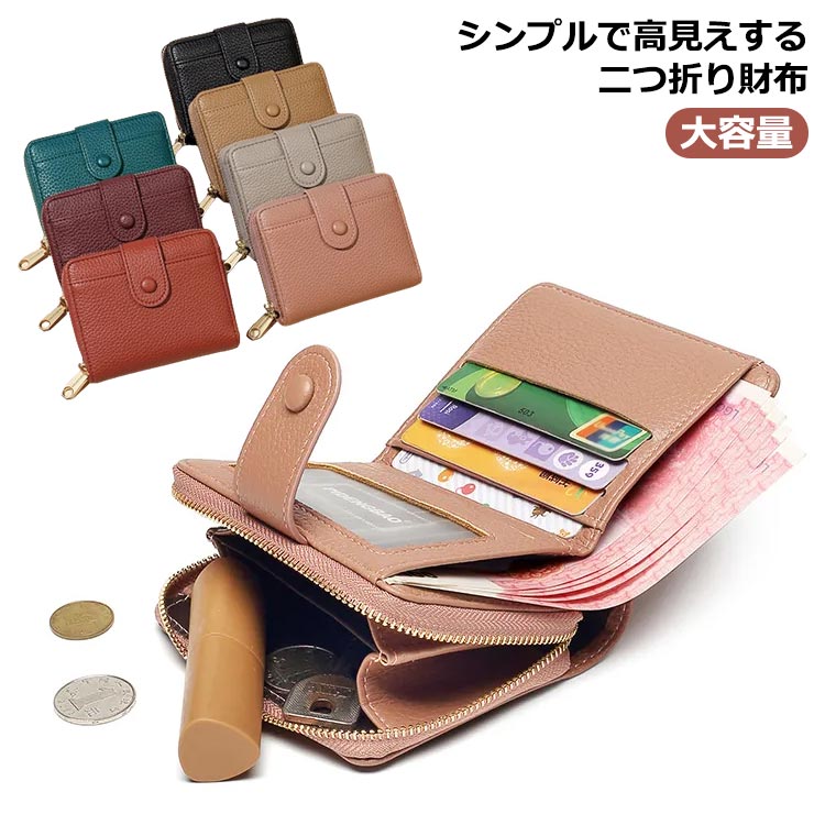 小銭入れ 二つ折り カードケース 財布 ミニウォレット コンパクト 薄い 大容量 可愛い スリム レ・・・