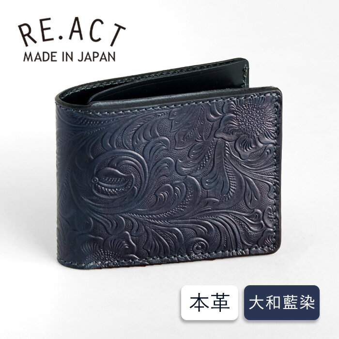 RE.ACT (リアクト) 大和藍染 二つ折り財布 (小銭入れ付き) フラワー [RA2021-00・・・