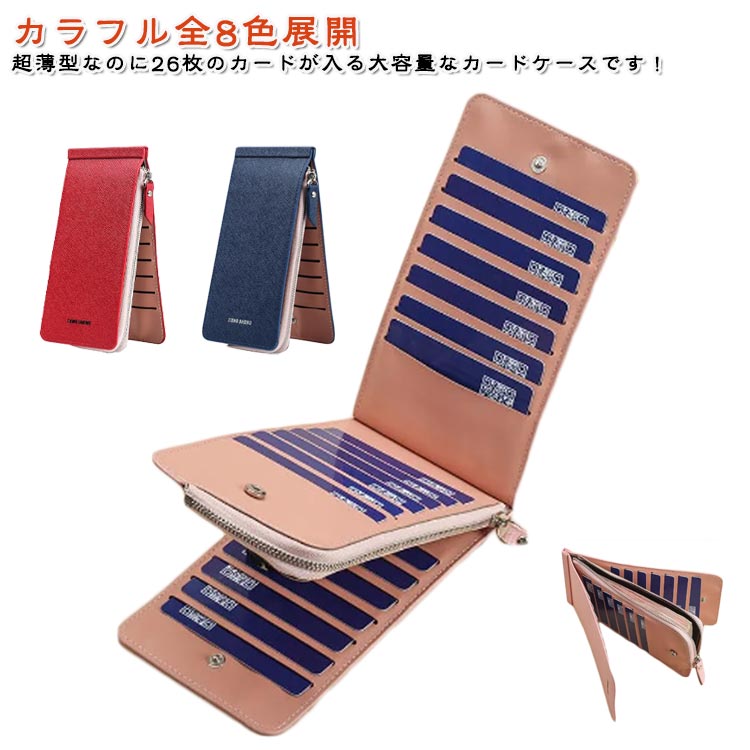 カードケース 薄型 8カラー 大容量 26枚収納可能 ファスナー カードケース 財布 携帯入れ 薄型