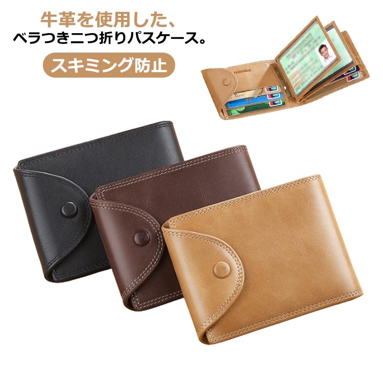 ベラつき二つ折り パスケース 革 カードケース スキミング防止 カード入れ 定期入れ おしゃれ