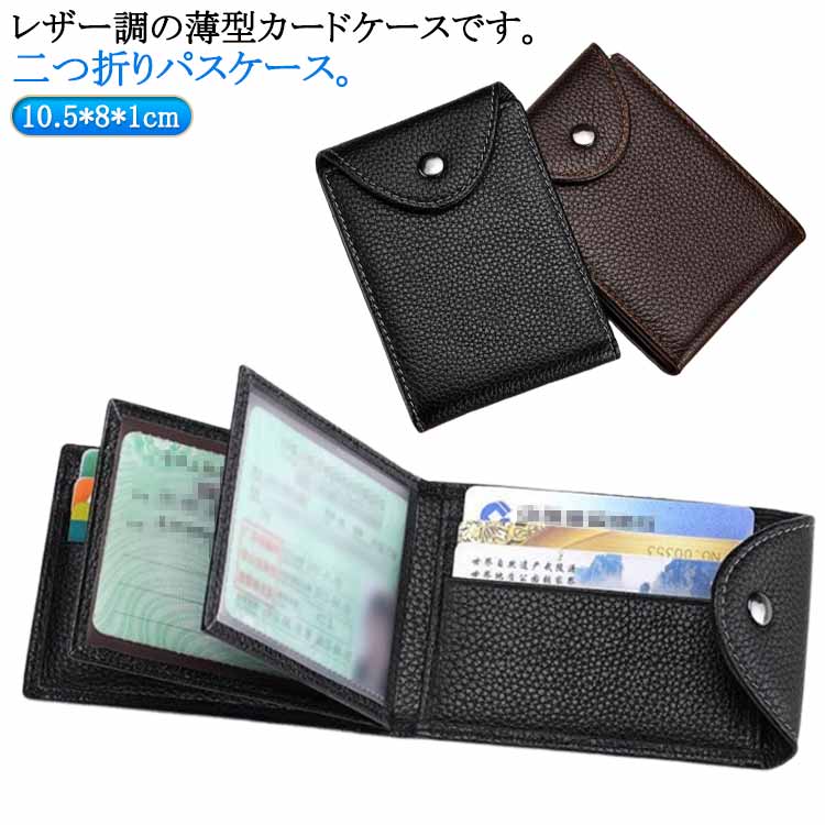 送料無料 カードケース 二つ折り 薄型 スナップボタン レザー調 フェイクレザー レディース メンズ・・・