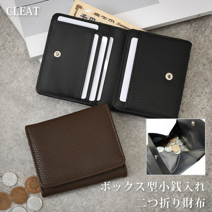 送料無料 CLEAT ボックス型小銭入れ 二つ折り 財布 メンズ フェイクレザー 二つ折り財布 小銭・・・