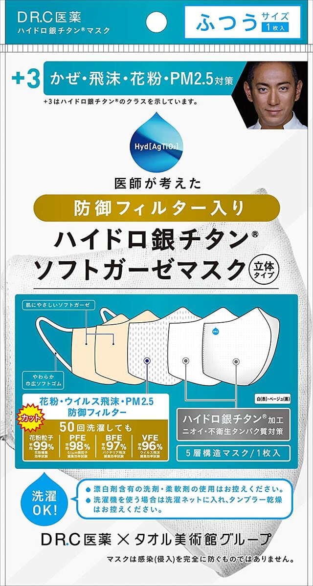 ハイドロ銀チタン ソフトガーゼマスク 立体タイプ ふつう 裏面ベージュ 1枚・・・