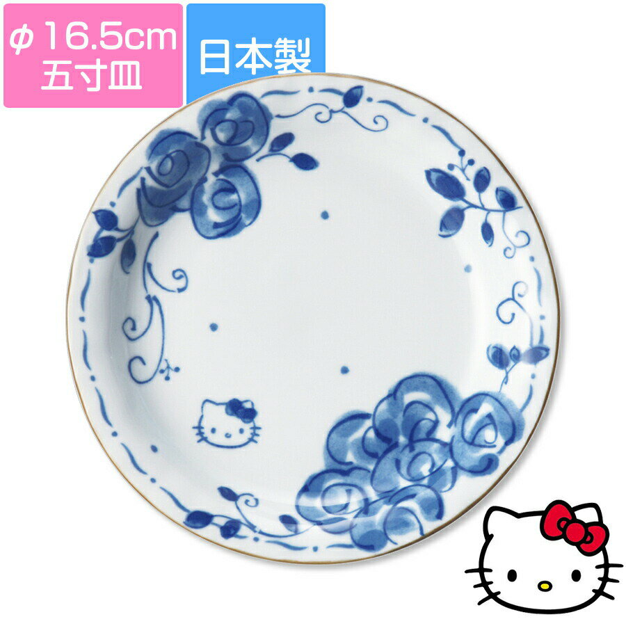 【ハローキティ(ブルーローズ)五寸皿】16.5cm平皿 ケーキプレート 大人向けの和風 染付食器 H・・・