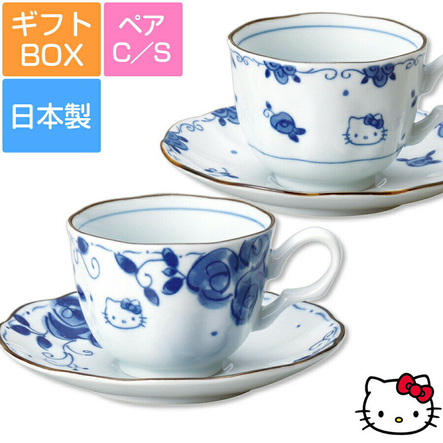 【化粧箱入り】【ハローキティ(ブルーローズ)ペアC/S】カップ&ソーサー 大人向けの和風 染付食器 ・・・