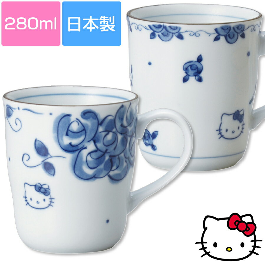 【ハローキティ(ブルーローズ)マグ】約280ml 大人向けの和風モダンな染付食器 Hello Kit・・・
