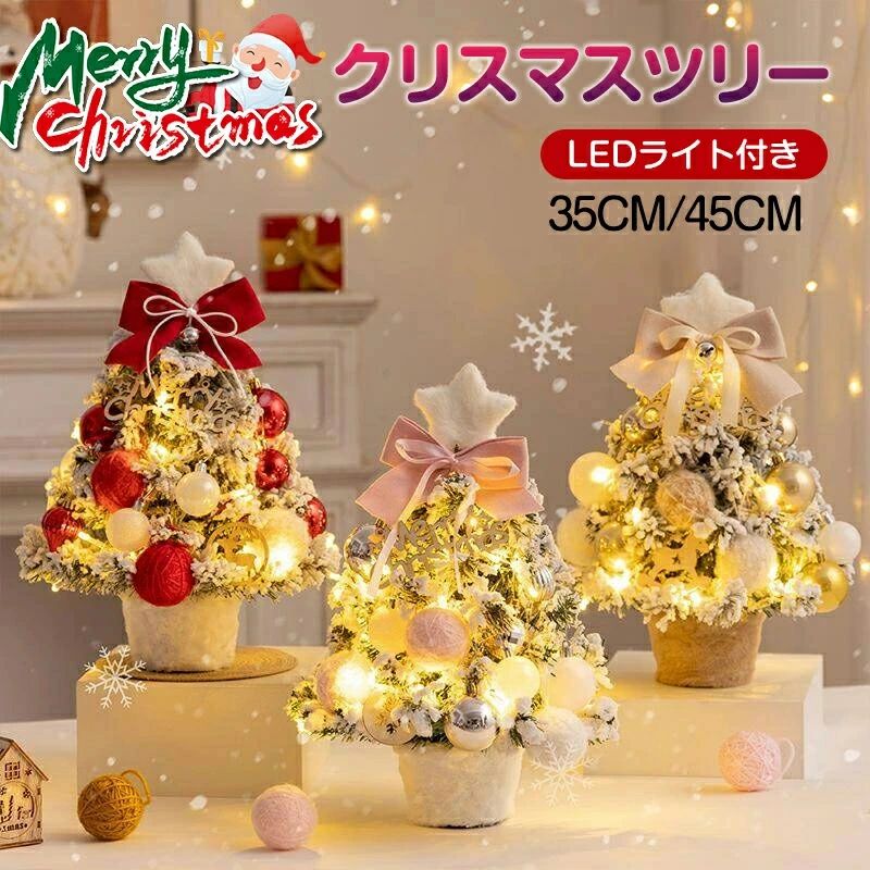 クリスマスツリー 小さめ ミニツリー 北欧 35cm 45cm 卓上ツリー LEDライト 飾りつけ ・・・