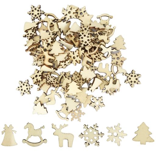 クリスマスオーナメント木製100個雪の結晶クリスマスツリートナカイベル木材チップスライスペンダントク・・・