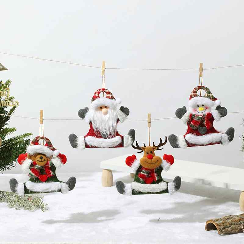 クリスマスオーナメント 座り姿 手を上げて踊る マスコット ぬいぐるみ サンタ 雪だるま トナカイ ・・・