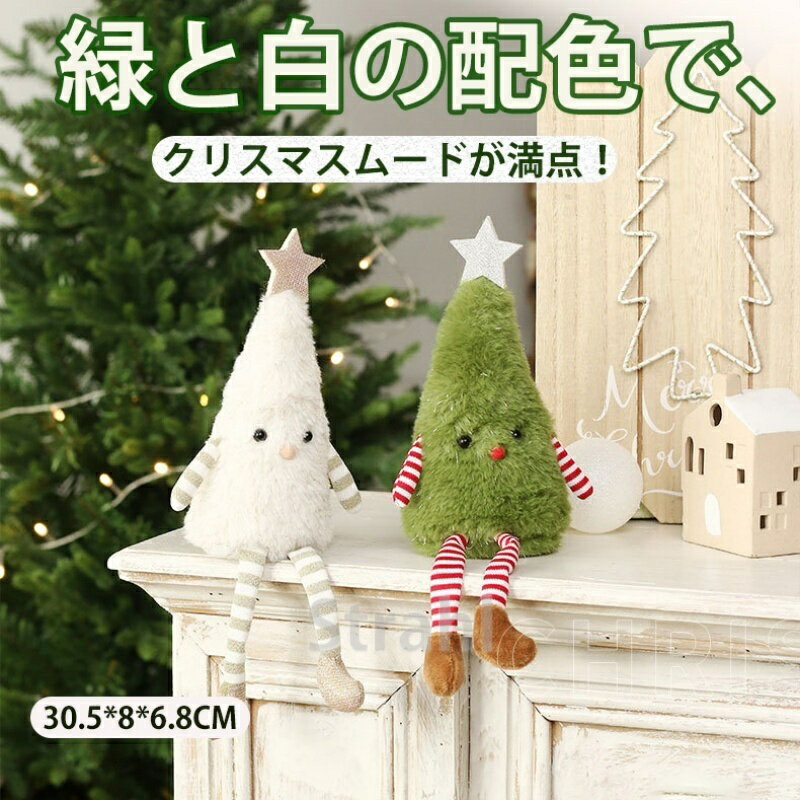 Merry Christmas クリスマス飾り 30.5*8*6.8cm ホワイト グーリン クリスマスツリー 卓上・置物 ぬいぐるみ おもちゃ アクセサリー オーナメント 孫へ プレゼント 北欧風