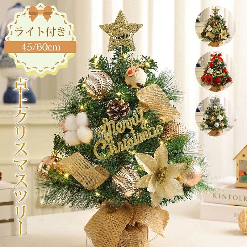 45cm 60cm 華やかなクリスマスツリー♪ミニクリスマスツリー DIY 小型卓上ツリー インテリア 部屋飾り 商店装飾 LEDライト付き 電池式