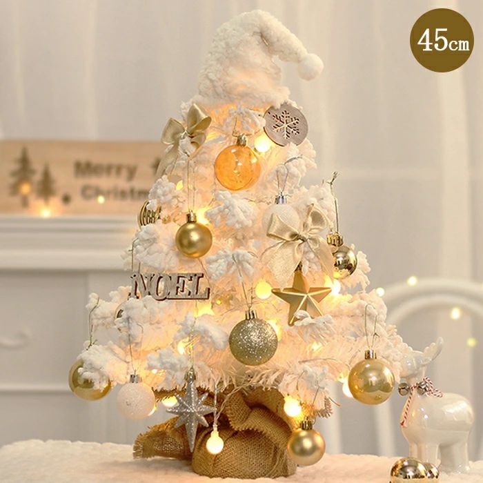 クリスマスツリー 卓上 45cm ミニツリー クリスマス飾り LEDライト付き キラキラ 電池式 オーナメント おしゃれ 雰囲気満々