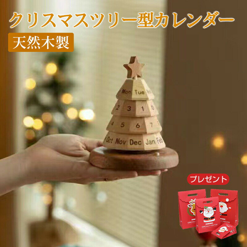 卓上 木製クリスマスツリー カレンダー 回転できる ツリー オブジェ 木製 クリスマスツリー 木製ツ・・・
