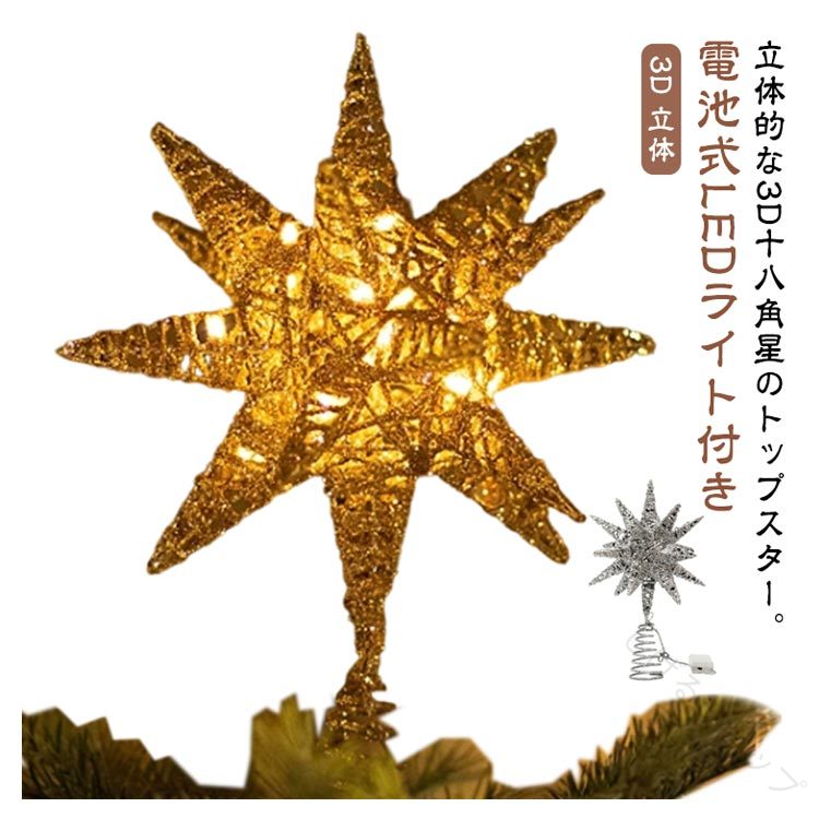 【LEDライトセット】クリスマス ツリートップ スター クリスマスツリー 星 ツリー 八芒星 オーナメント 飾り ライト 装飾