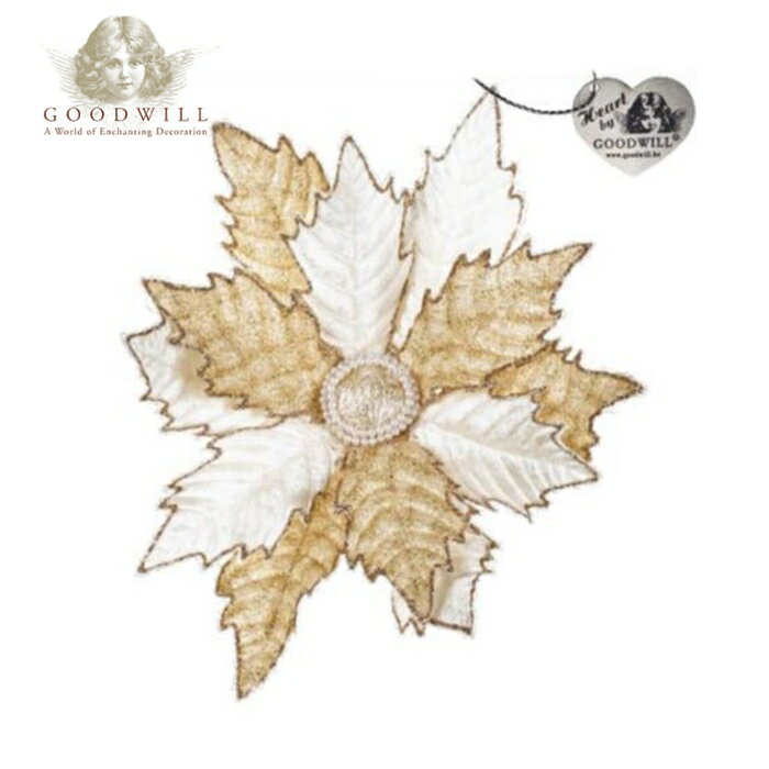 ベルギー GOODWILL(グッドウィル)パールポインセチアクリップ ホワイト×ゴールド 20cm ・・・