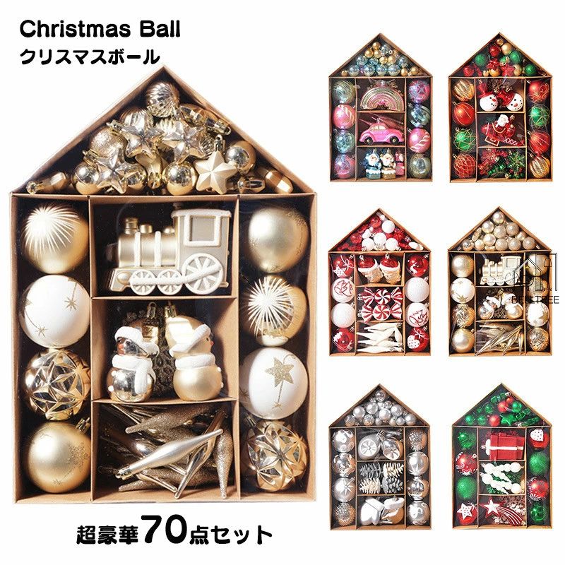 クリスマスオーナメントボール セット 大盛り 飾り 70個入りホワ