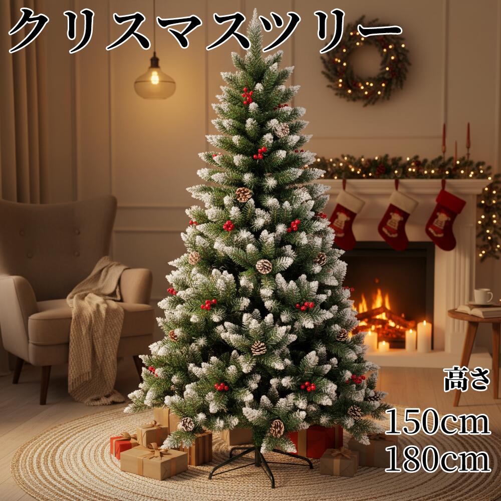 クリスマスツリー 150cm 180cm 雪 コンパクト収納可能 グリーン 雪付き 豊富な枝数 ツリー おしゃれ 飾り スリム 小さめ リアル