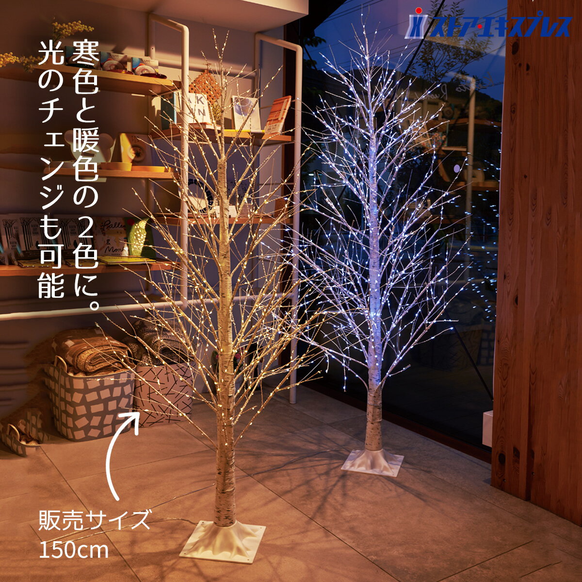 【アウトレット】白樺 ツリー シラカバ 150cm 可愛い テーブル 寝室 6時間 タイマー 電池式 LED