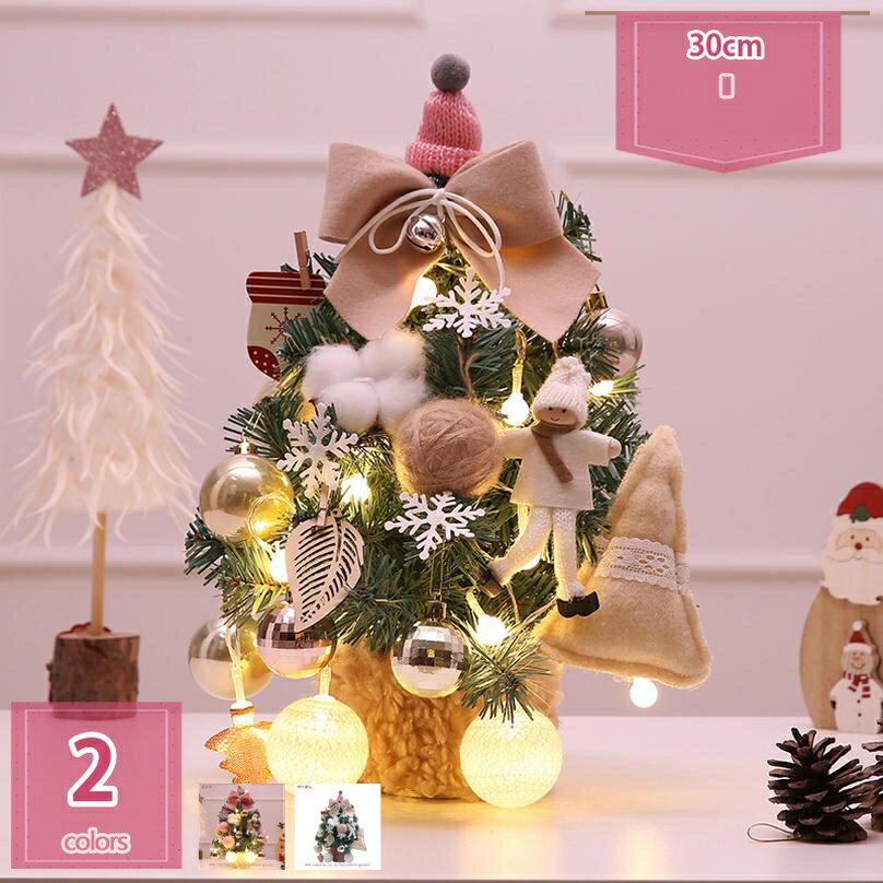 小さめサイズで飾る場所を選ばない♪クリスマス気分を盛り上げよう♪ミニクリスマスツリー DIY 小型卓上ツリー インテリア 部屋飾り 商店装飾 LEDライト付き 電池式 XMAS
