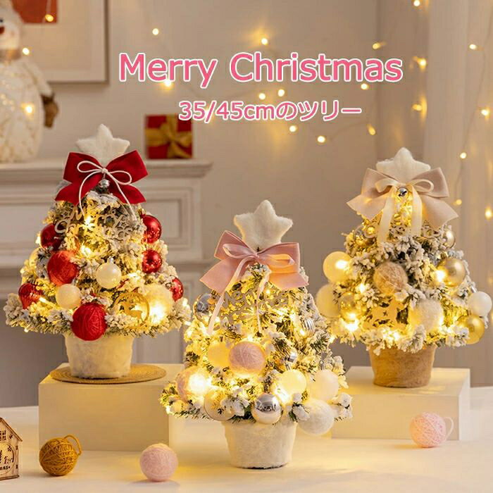 クリスマスツリー 卓上 35cm 45cm LEDイルミネーション 卓上 ミニツリー 雪化粧 スノー・・・