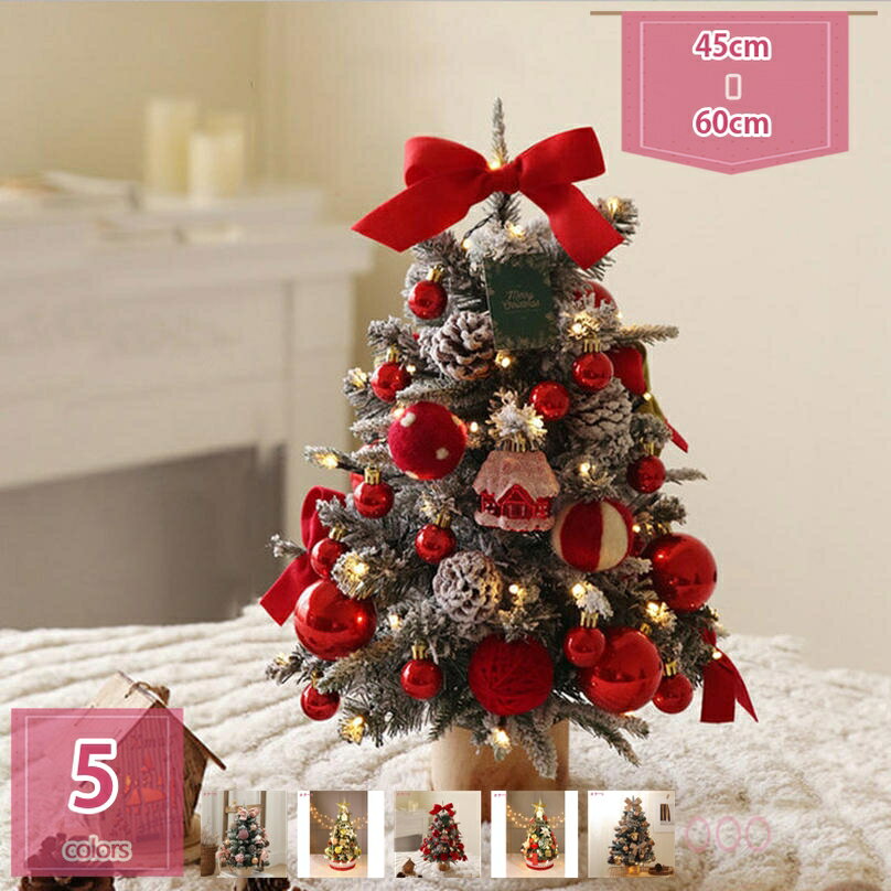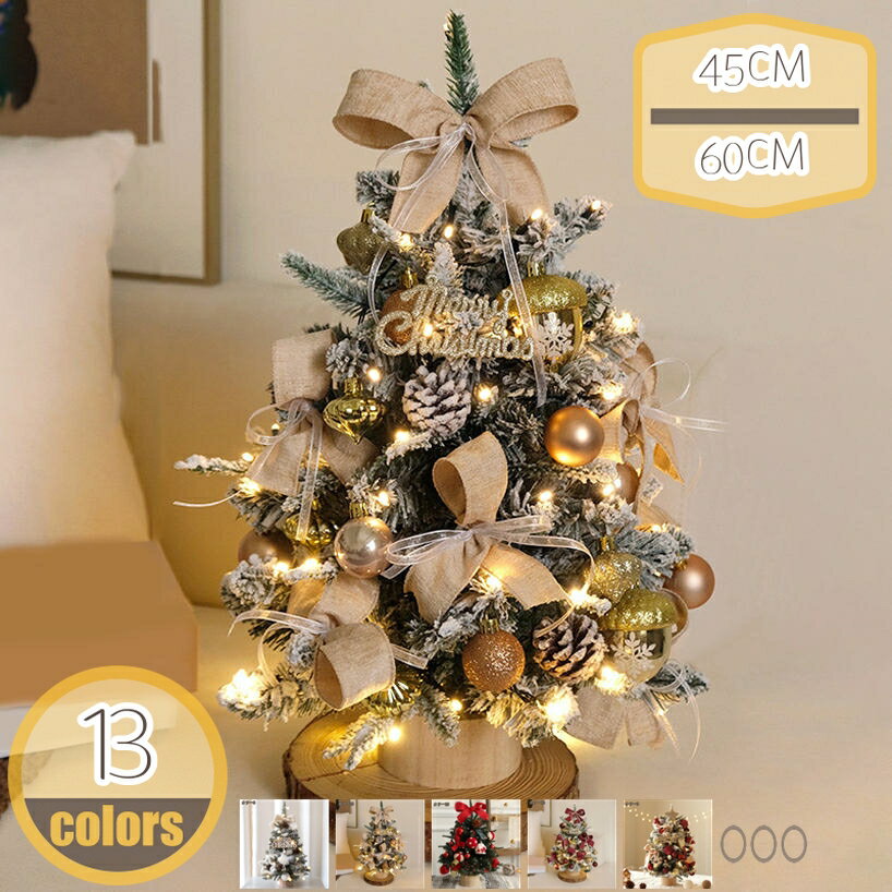 クリスマスツリー 卓上 45cm/60cm ミニツリー 小さめ クリスマス飾り LEDライト付き キ・・・