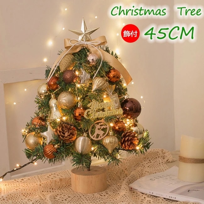 クリスマスツリー 卓上 45cm 60cm おしゃれ 北欧 LEDライト付 ミニツリー 小さめ クリスマス飾り LED キラキラ オーナメント 部屋 商店 玄関 インテリア 飾付け クリスマス雑貨 ギフト