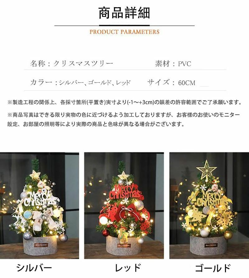 クリスマスツリー 卓上 クリスマスツリー 小さめ LEDライト付き 45cm 60cm