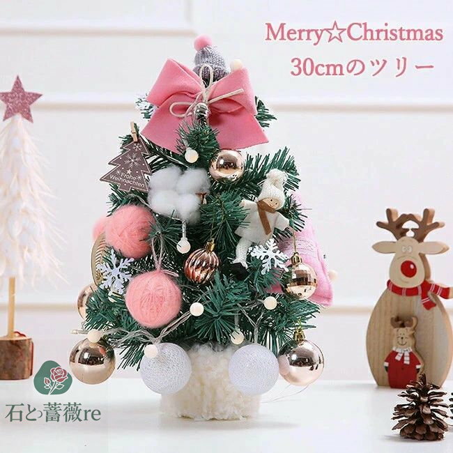 クリスマスツリー 卓上 30cm ミニツリー クリスマス飾り LEDライト付き キラキラ 電池式 オーナメント おしゃれ 雰囲気満々