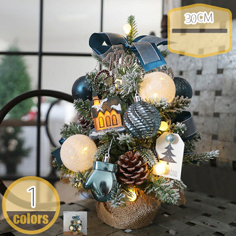 クリスマスツリー 小型 卓上ツリー デコレーション おしゃれ ブルー ゴールド ブラウン 飾り付き ・・・
