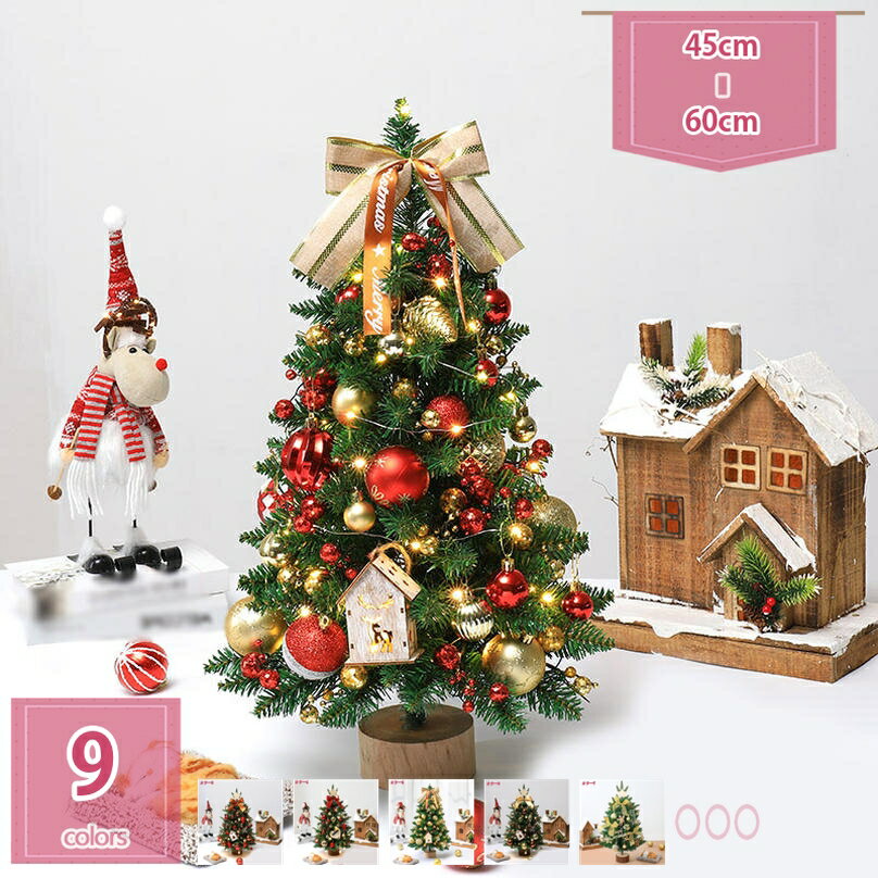 クリスマスツリー 卓上 クリスマスツリー 小さめ ライト付き 45 60