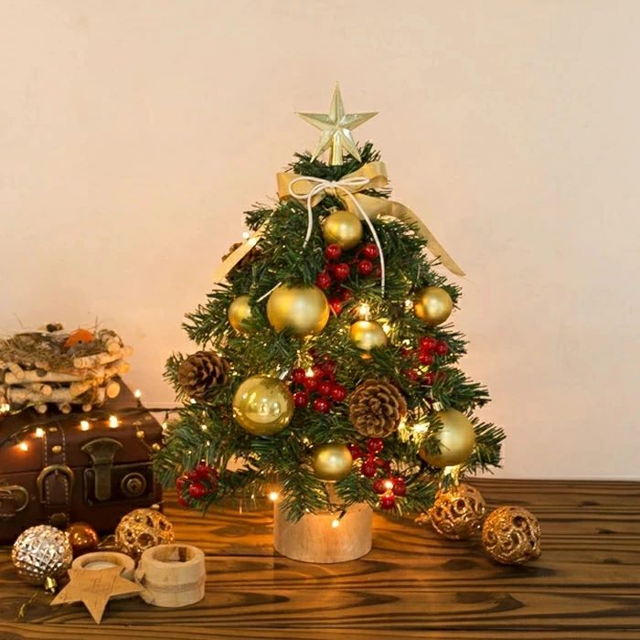 クリスマスツリー 卓上 45cm 北欧風 ミニツリー デコレーションツリー LED ライト付き クリスマス飾り プレゼント かわいい 簡単な組立品 部屋 商店 玄関