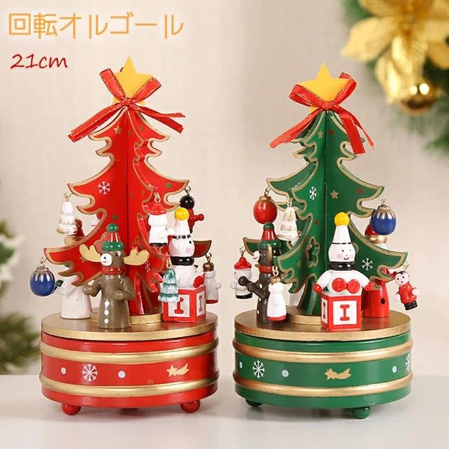クリスマス 飾り 回転オルゴール クリスマスツリー 卓上 おしゃれ 北欧 木製 卓上 小型 コンパクト テーブル ミニツリー 手巻き式 雰囲気満々 クリスマスデコレ